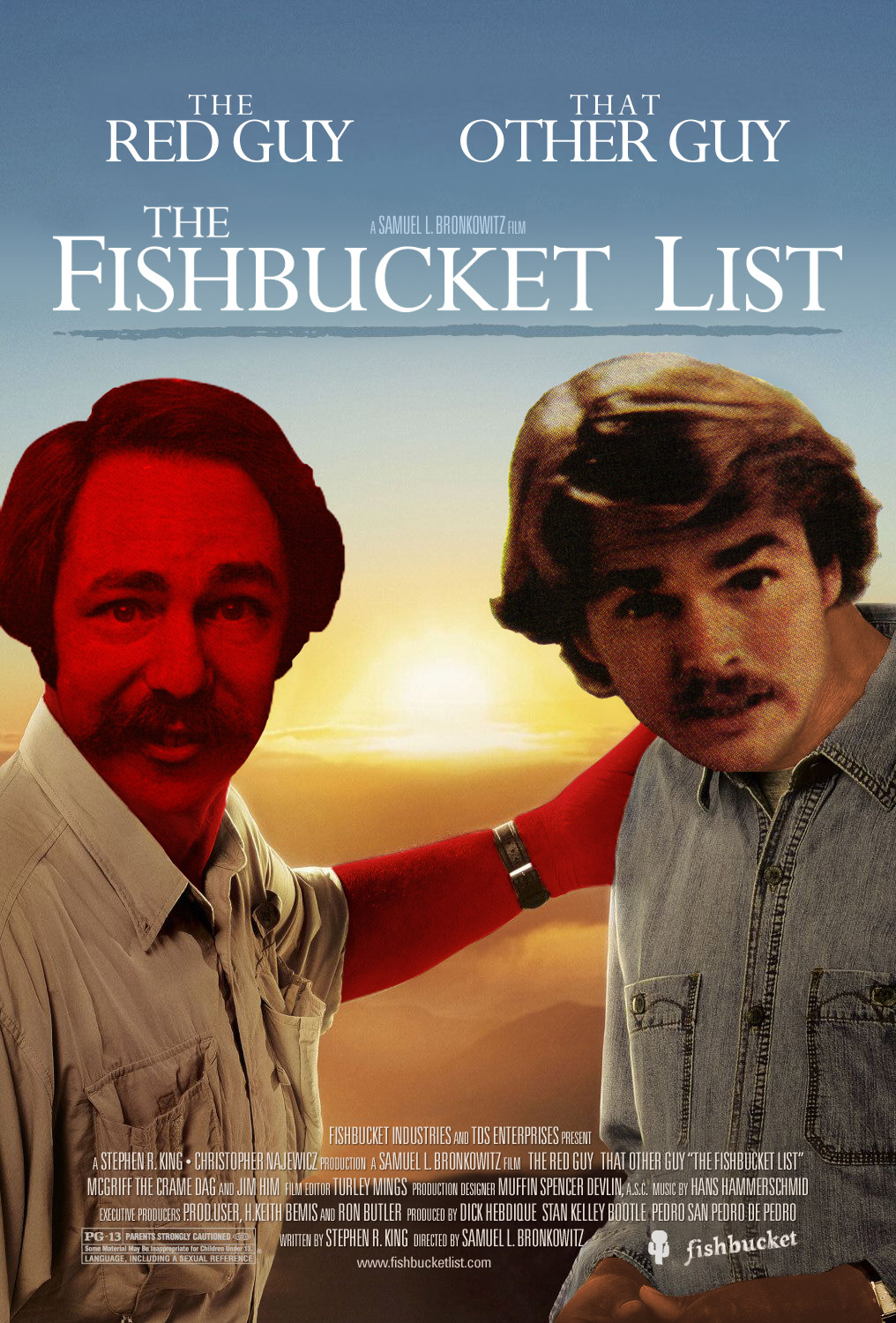 a STEPHEN R. KING * CHRISTOPHER NAJEWICZ production a SAMUEL L. BRONKOWITZ film THE RED GUY THAT OTHER GUY "THE FISHBUCKET LIST" MCGRIFF THE CRAME DAG and JIM HIM film editor TURLEY MINGS production designer MUFFIN SPENCER DEVLIN, a.s.c. music by HANS HAMMERSCHMID executive producers P.ROD.USER, H.KEITH BEMIS and RON BUTLER produced by DICK HEBDIQUE STAN KELLEY BOOTLE PEDRO SAN PEDRO DE PEDRO written by STEPHEN R. KING directed by SAMUEL L. BRONKOWITZ